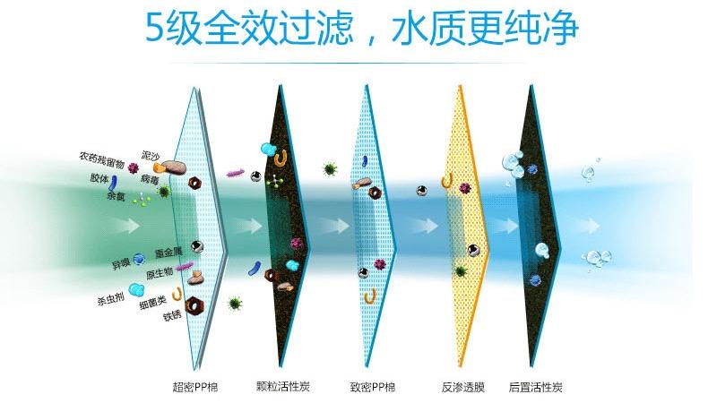 第四級(jí):RO逆滲透膜:去除水中細(xì)菌、重金屬、鹽分、不良礦物質(zhì)及其他溶解物和在自來水處理過程中所加入的化學(xué)藥劑。(世界六大高科技產(chǎn)品之一-逆滲透膜:孔徑只有細(xì)菌五千萬分之一,能徹底濾除所以細(xì)菌、病毒、農(nóng)藥、有機(jī)物、重金屬等化學(xué)污染物。能將海水變淡水,太空人尿液過濾后再飲用,桶裝水就是采用逆滲透原理生產(chǎn)的。)